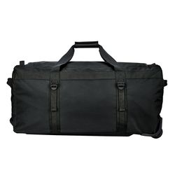 Description: Extra large 95 litre duffel bag with heavy-duty, reinforced webbing and handles, roller wheels and extendable pull handle for easy transportation. Compression straps allow you to adjust the size of the duffel and prevents contents from shifting during transit.